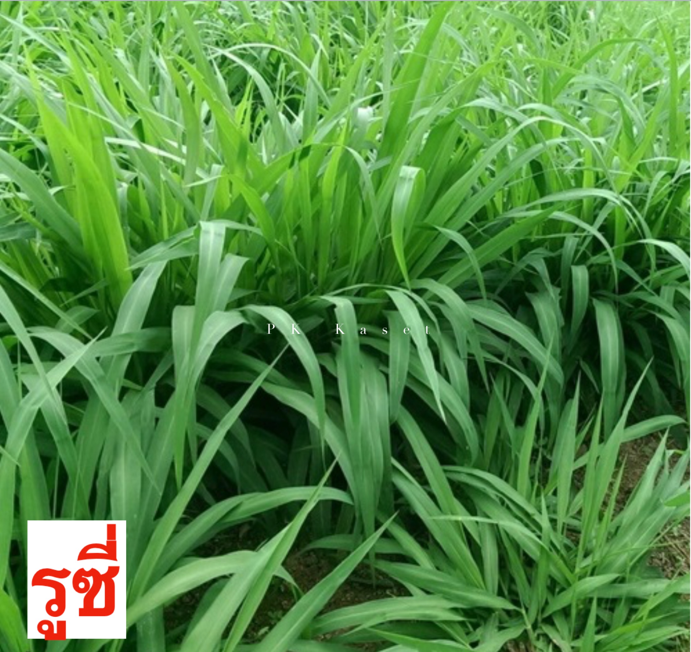 หญ้ารูซี่ ( Brachiaria ruziziensis ) เป็นหญ้าที่มีอายุหลายปี มีลักษณะการเจริญเติบโตแบบต้นกึ่งเลื้อยกึ่งตั้ง สูง 60-100 เซนติเมตร ลำต้นกลม แข็งเรียวเล็กไม่มีขนที่ลำต้น มีรากและแตกแขนงบริเวณโคนต้น ใบสีเขียวอ่อนมี ลักษณะคล้ายหอกอ่อนนุ่ม มีขนละเอียดคลุมทั้งด้านหน้าและหลังใบ ใบยาว 13-15 เซนติเมตร กว้าง 0.8-2.5 เซนติเมตร ชอบอากาศในเขตร้อนที่ฝนตก ต้องการดินที่มีความอุดมสมบูรณ์ มีคุณค่าทางอาหาร สัตว์สูง ลักษณะเด่นของหญ้ารูซี่ คือ สามารถผลิตเมล็ดได้มาก และเมล็ดมีความงอกสูง ทำให้สะดวก ต่อการขยายพันธุ์ด้วยเมล็ดซึ่งเป็นผลให้มีเกษตรกรผู้เลี้ยงสัตว์ปลูกหญ้ารูซี่ได้อย่างรวดเร็ว สามารถ เจริญเติบโตในดินที่มีความอุดมสมบูรณ์ต่ำขึ้นได้ดีในพื้นที่ดอน ดินมีการระบายน้ำดี ทนแล้งพอสมควร ทนต่อการเหยียบย่ำของสัตว์ ไม่ทนน้ำท่วมขัง ผลผลิตน้ำหนักแห้ง 2.0-2.5 ตันต่อไร่ปีโปรตีน 7-10 เปอร์เซ็นต์